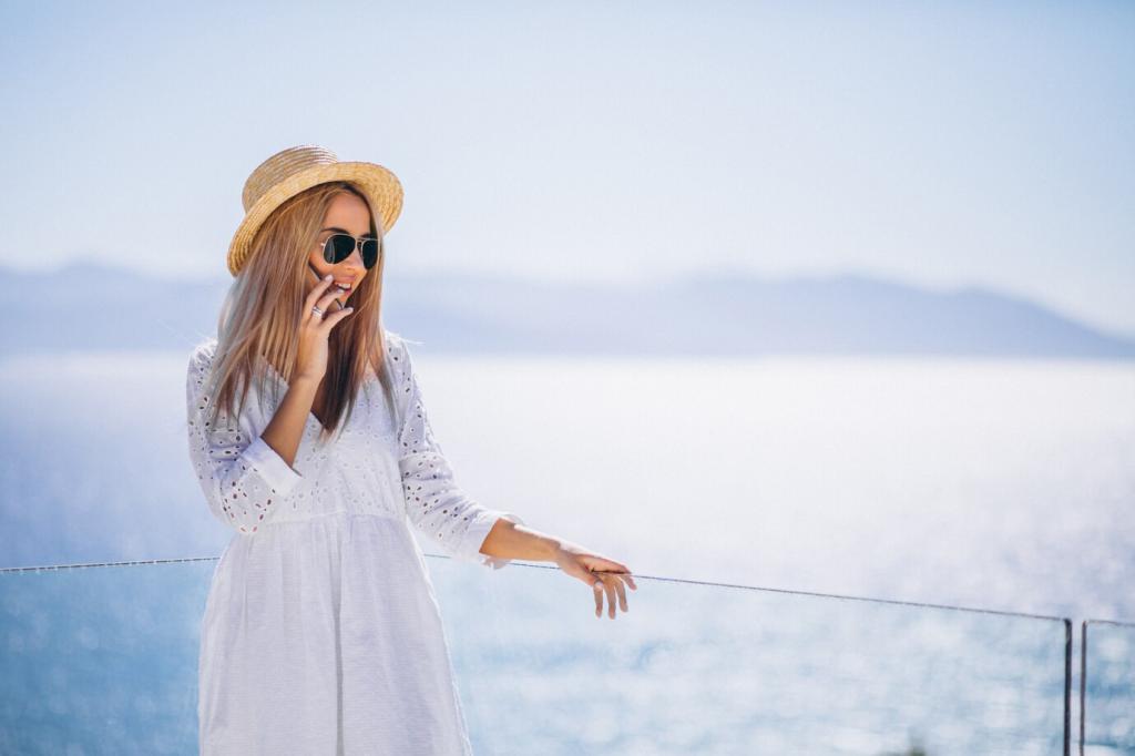 Hohe Hecken und abgeschirmte Terrassen bieten Diskretion, sichere Zufahrten und smarte Schlösser beruhigen. Prüfen Sie Zufahrtswege, Parkmöglichkeiten und Barrierefreiheit. Fragen Sie nach Hausregeln für Gäste, damit Ihr Aufenthalt angenehm, respektvoll und ungestört verläuft.